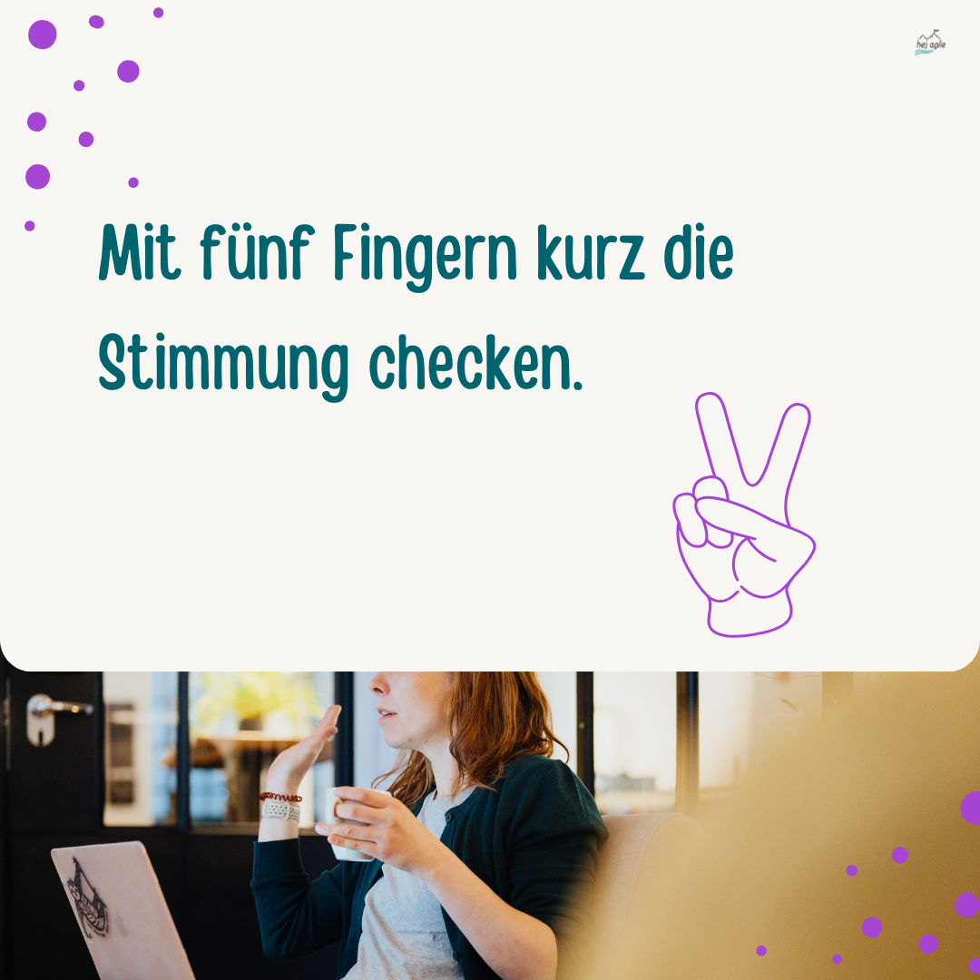 Alle Teammitglieder zeigen gleichzeitig 1–5 Finger. Dadurch entstehen keine sozialen Vergleichseffekte. Jede Stimme kommt so, wie sie eben ist.Kurzer Austausch (optional, aber empfehlenswert)